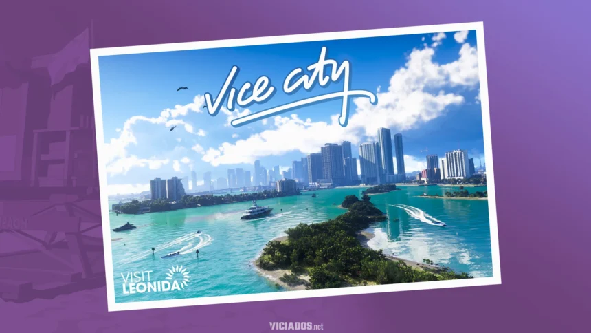 Além de artworks de personagens de GTA 6, temos os cartões postais com locais de Vice City: