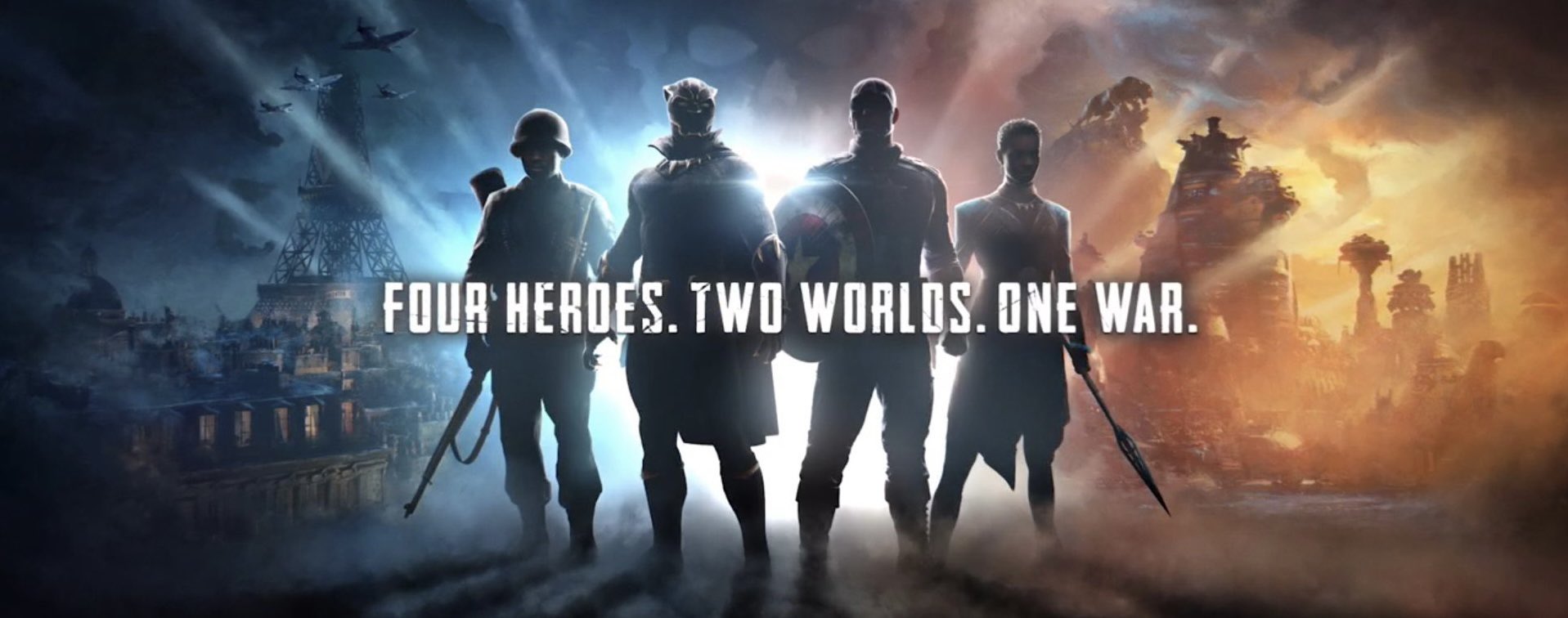O trailer do jogo começou com algumas dicas sobre o cenário dado através da música e das armas antes de passar para o escudo do Capitão América. Olhando mais para cima, vemos que o escudo tem algumas marcas de garras, revelando o Pantera Negra. Dois outros heróis também se juntarão à luta, apesar de não terem sido apresentados com tanto destaque quanto os dois primeiros.
