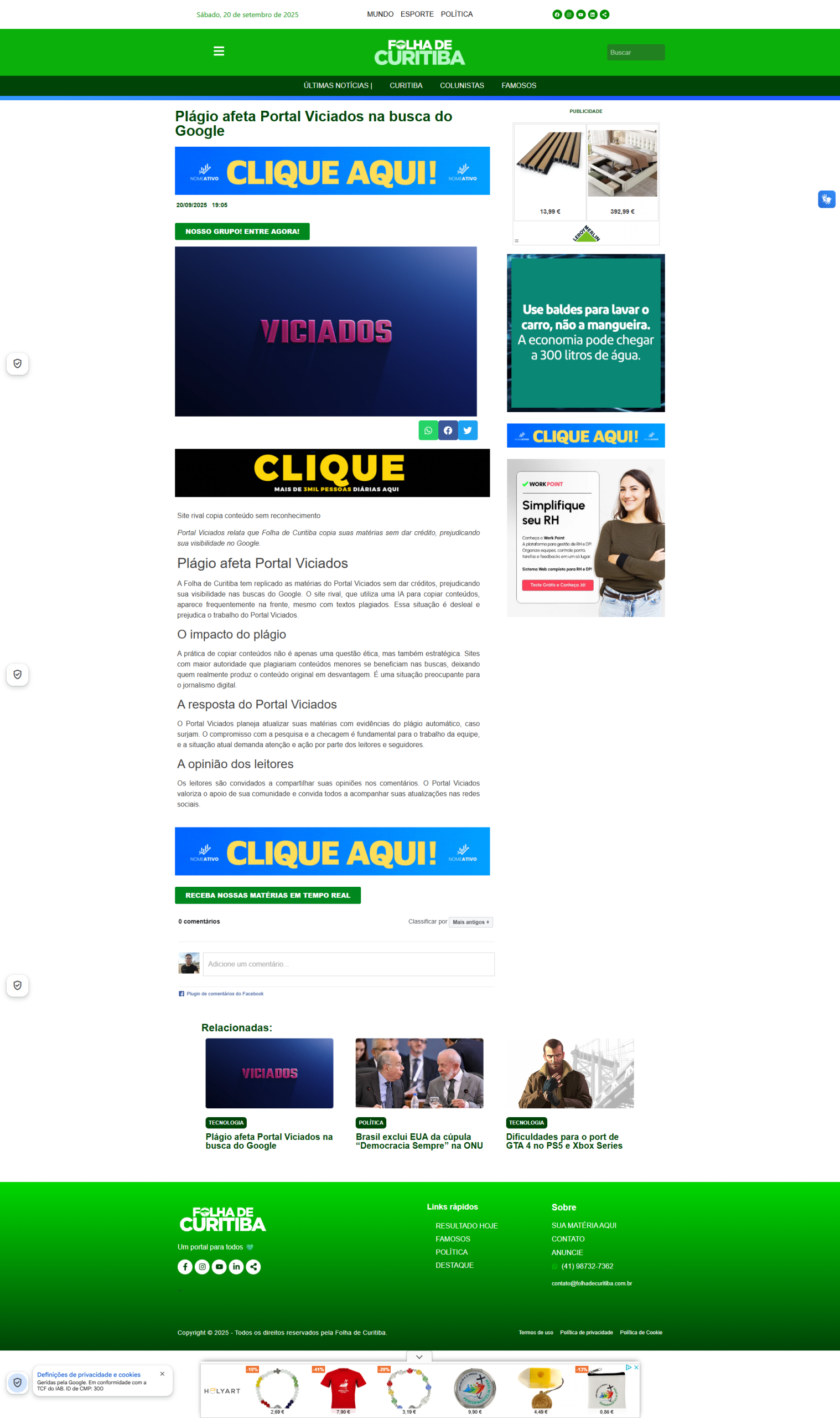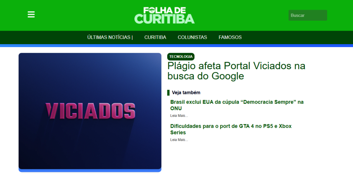 A Folha de Curitiba anda copiando praticamente todas as nossas matérias. Análises de jogos, novidades, notícias… tudo replicado, todas as vezes sem nenhum crédito. O pior? O site deles parece ter mais autoridade no Google, então acaba aparecendo na frente nas buscas, mesmo com conteúdo copiado.