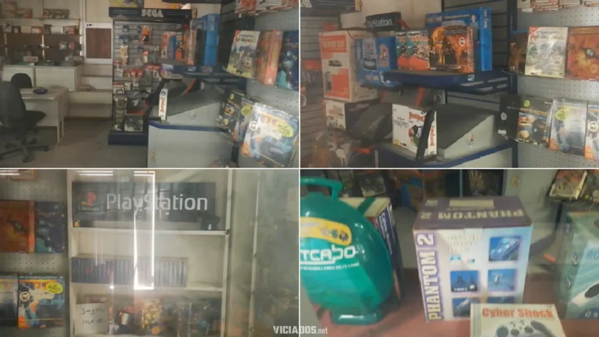 A loja, que aparentemente não sofreu nenhuma intervenção desde que foi fechada, possui prateleiras abarrotadas de clássicos como Sega, PlayStation e até mesmo acessórios menos conhecidos, como o Phantom 2.