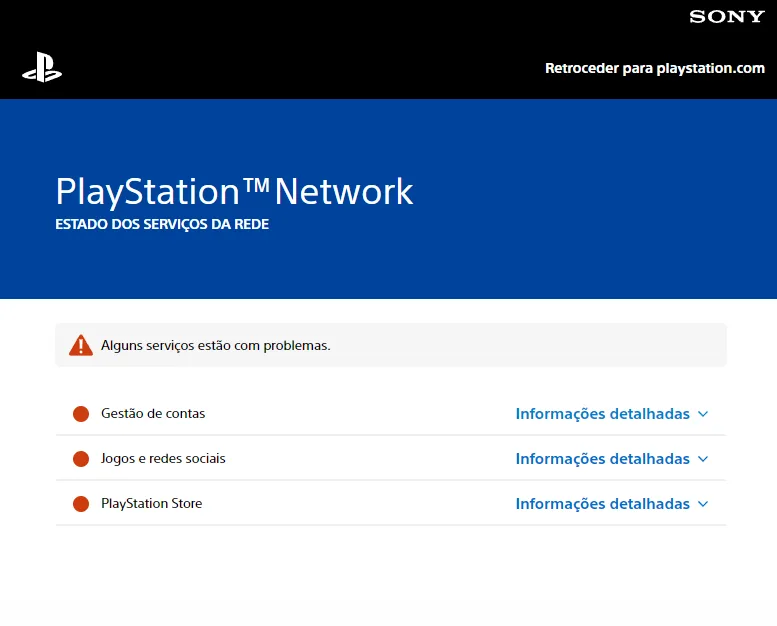 De acordo com o site oficial da Sony, praticamente todos os serviços da PlayStation Network — incluindo Gerenciamento de Conta, Jogos e redes sociais, PlayStation Video e a PlayStation Store — estão apresentando problemas.