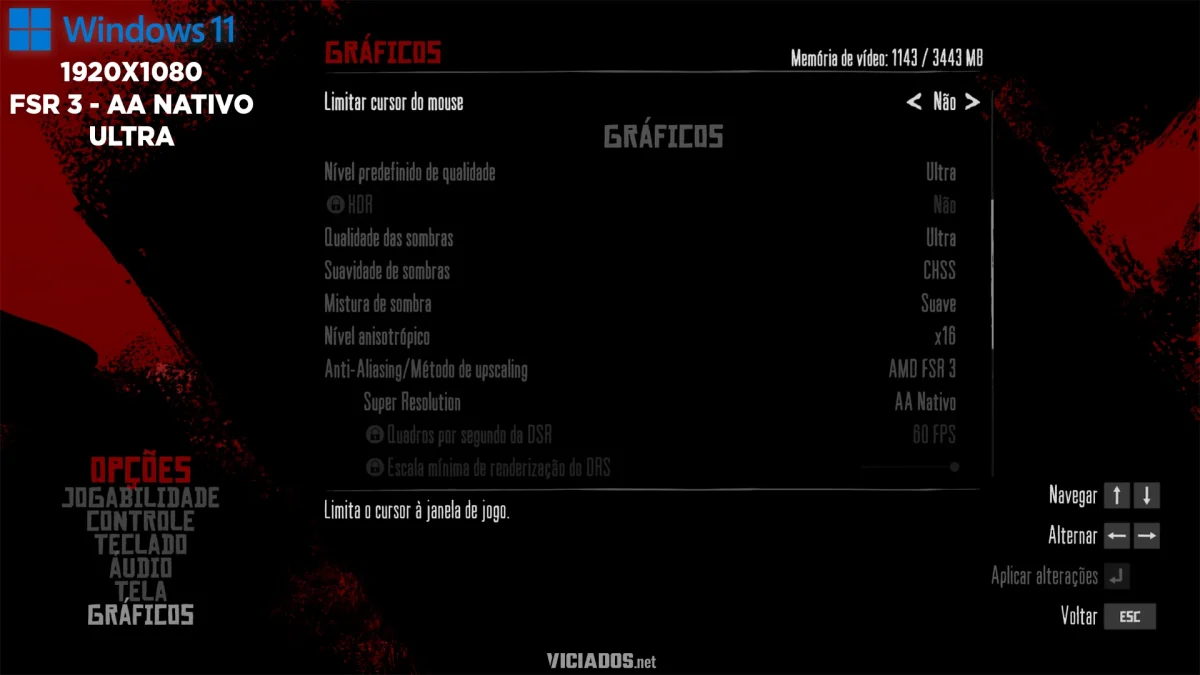 A vantagem aqui não é só performance, é qualidade de imagem: ativar o DLAA (Deep Learning Anti-Aliasing) consegue suavizar os serrilhados das cercas e a vegetação dura muito melhor que o AA nativo do jogo, “modernizando” a imagem e removendo cintilações distantes (shimmering) que ainda podem ser vistas nos consoles em certas condições de iluminação.