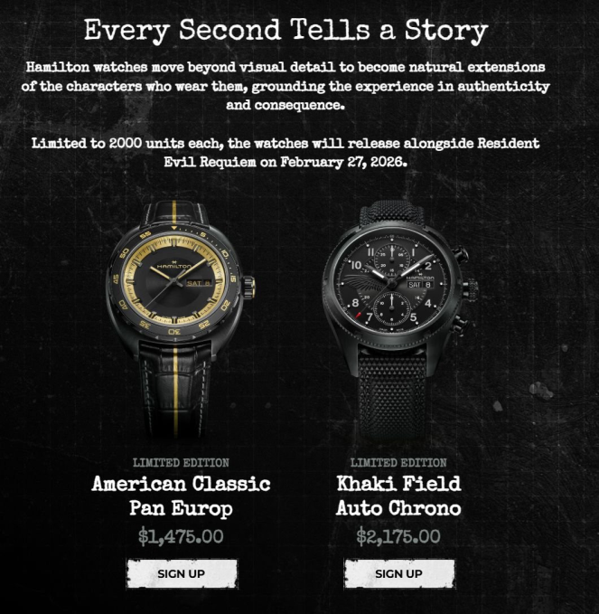 Um detalhe que chamou atenção dos fãs foi o cuidado com o design de Leon S. Kennedy e Grace Ashcroft. O personagem utiliza um relógio assinado pela Hamilton, marca suíça conhecida por sua presença no cinema e em produtos premium.