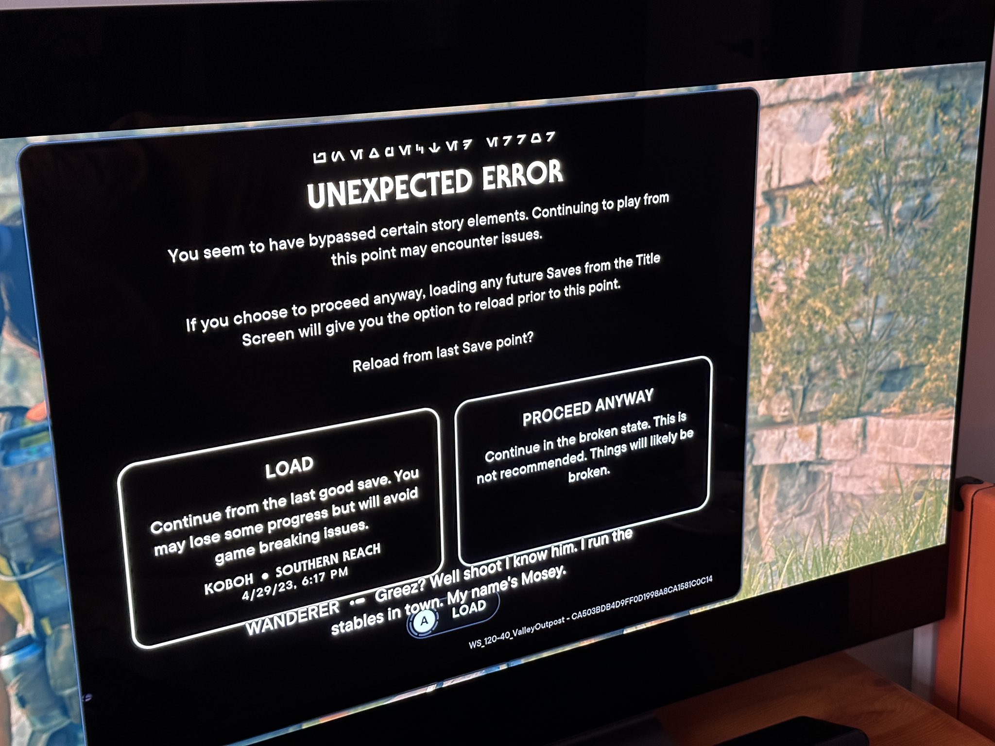 Durante sua jogatina, o mesmo não conseguiu carregar um save, uma vez que este pode ter corrompido; mas nem com a opção de carregar o último salvamento íntegro, reiniciar o jogo ou desligar o console, foi possível salvar a campanha.