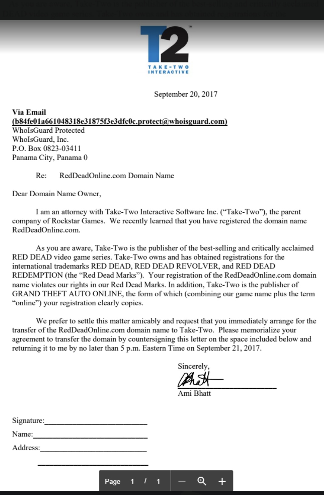 Há linhas tortas no campo de assinatura no final da página; o nome do dono do domínio é desconhecido; e este documento, do mesmo molde, já havia sido enviado no passado para o dono do domínio RedDeadOnline.com. Mesmo que esteja com a logo da T2, é bom levar todas estas informações com cuidado, uma vez que nada foi confirmado até o momento.